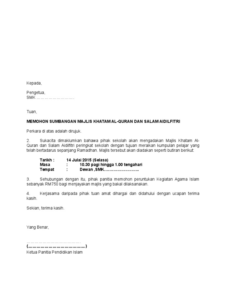 Contoh Surat Sumbangan Ramadhan Dan Aidilfitri Words
